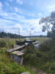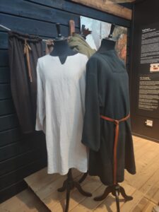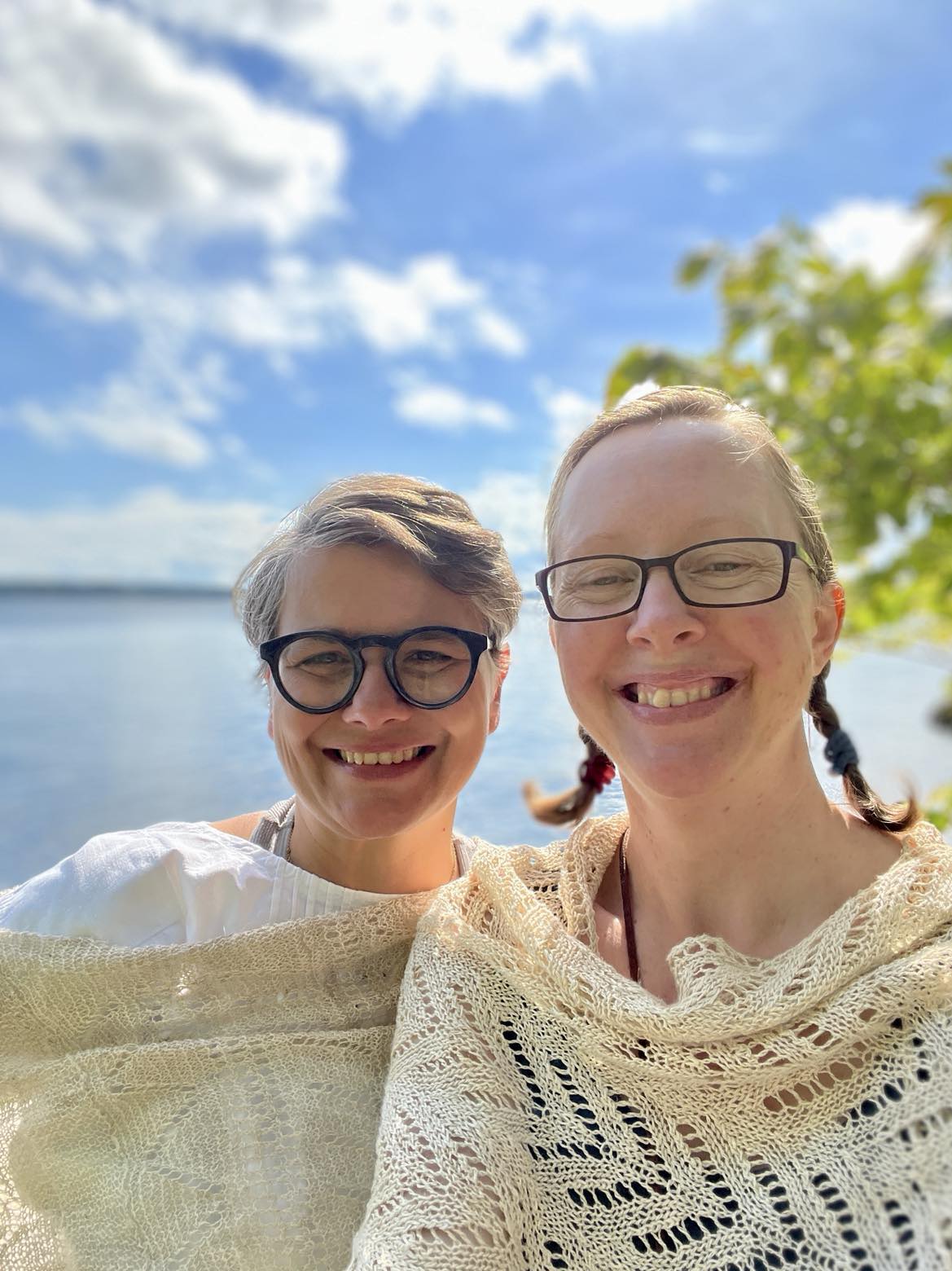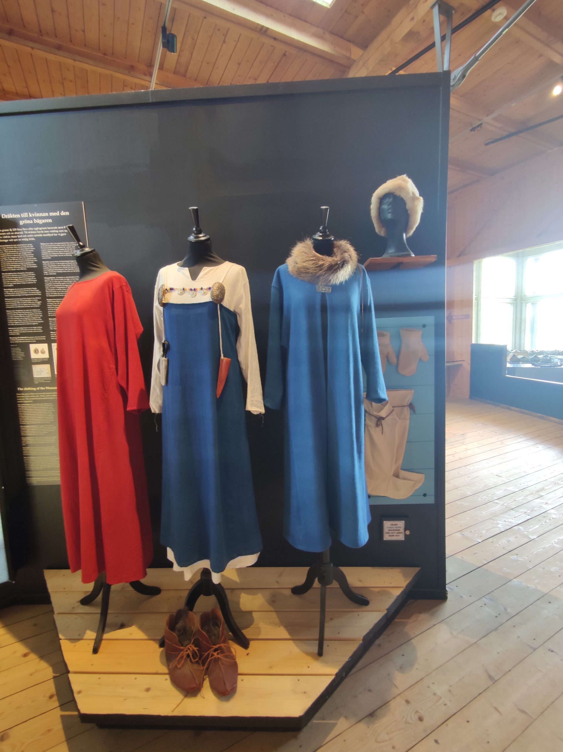 Birka war ein wichtiger Handelsplatz der Wikinger und ein reicher Fundort von frühmittelalterlichen Textilien - liebevoll nachgearbeitet und detailliert beschrieben im kleinen Museum. Leinen war auch in Birka schon ein wichtiges Material, wenn auch eher luxuriös, viel weiter verbreitet war Wolle. Spannend fand ich wie groß der Handelsradius der Wikinger war - Krapp aus dem Süden, Seide aus China, Goldmünzen aus Afrika. Ein wunderschöner Spaziergang in die Vergangenheit zusammen mit einer wunderbaren Frau. Josefin h.at österreichische Wurzeln (ihr Vater ist aus Wien) und wir haben uns schon einmal in Bad Ischl getroffen. Sie ist eine außergewöhnlich gute Spinnerin sowie Strickerin und inzwischen gute Freundin. Bei strahlendem Sonnenschein haben wir Birka erkundet und über die Welt geplaudert. FaserfreundInnen zu haben, inzwischen in der ganzen Welt, ist so etwas Besonderes und ich werde Berta ewig dankbar sein dafür!